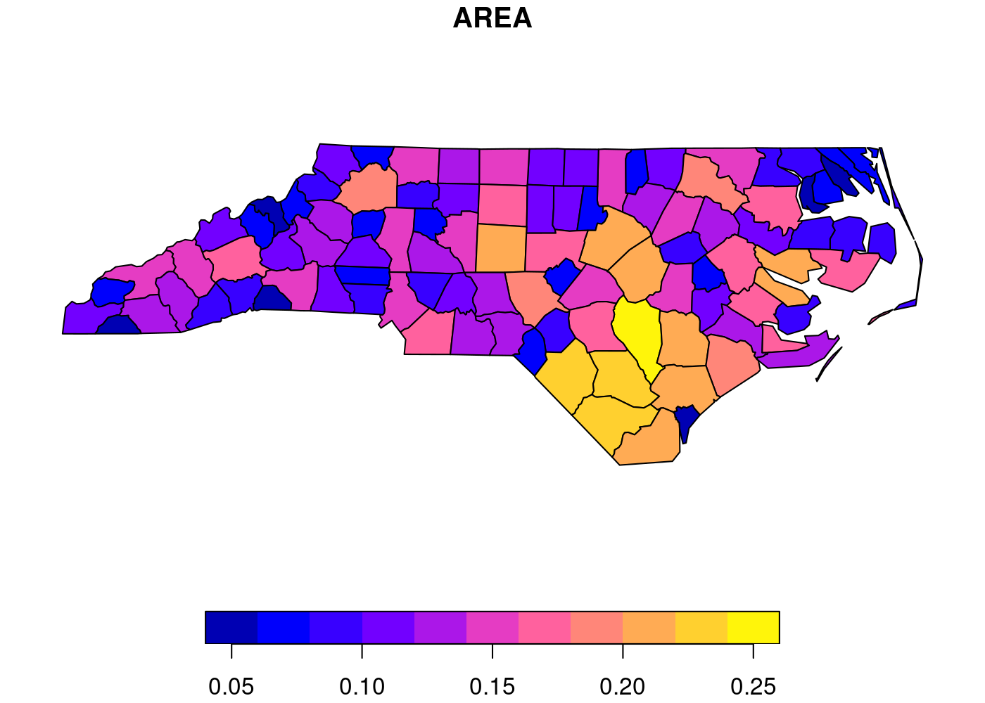 I already loaded sf to make the plot of North Carolina above, so now let’s load the remaining packages we’ll use: